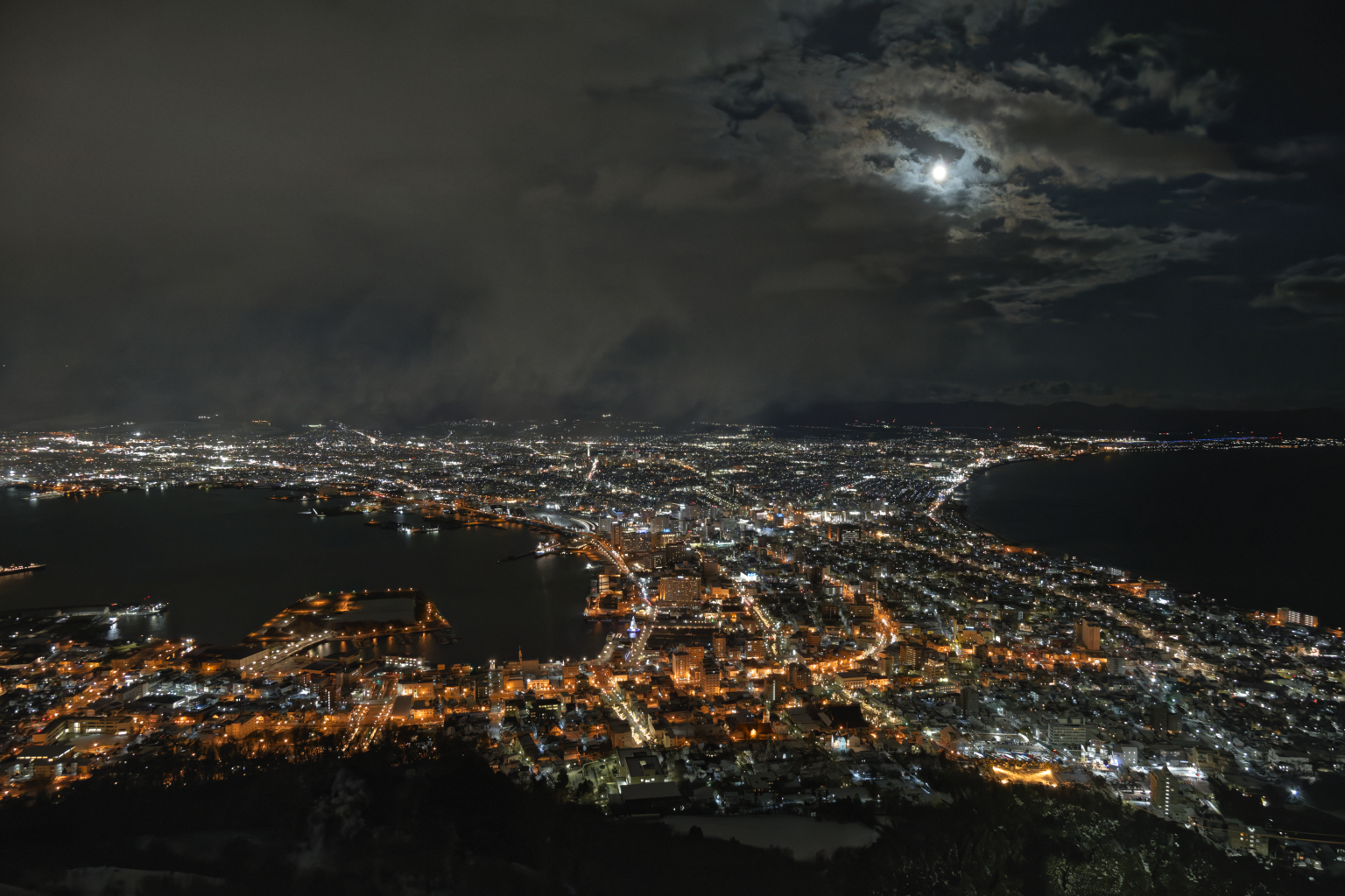 日が暮れてしまうと、夜景自体にはあまり変化がないけど、雲の様子で写真の表情も変わってくるね🙂