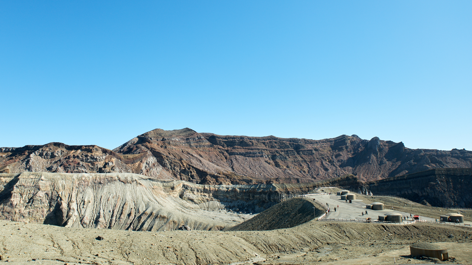 例えば、噴火警戒レベルが[1]のときは、十分に〝活火山であることに留意〟する必要はあるものの、火山活動自体は〝静穏〟な状態を指すため立入規制は解除 → 中岳火口を見学できます。