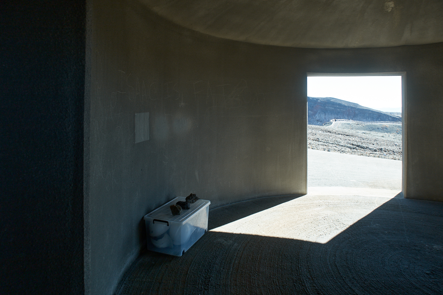 万一の事態には、この待避壕に逃げ込むことになるため、すべてのシェルターにヘルメットが常備されています。このような光景を見ると、やっぱり阿蘇山は現役の活火山なんだなぁと再認識させられます。