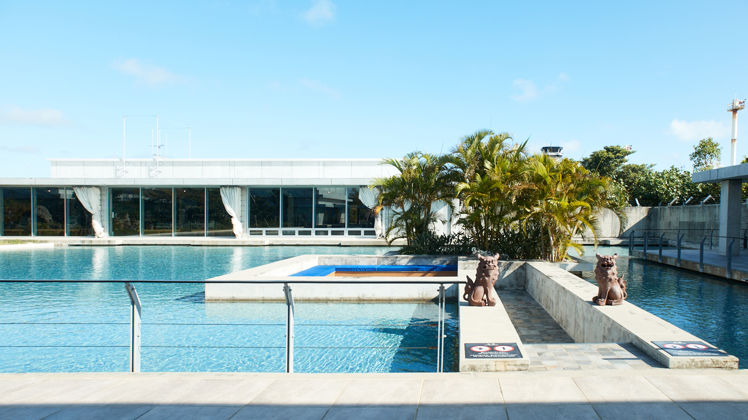 小さく見えるシーサーの背中を横目に、徒歩で空港内に入って行きます🚶